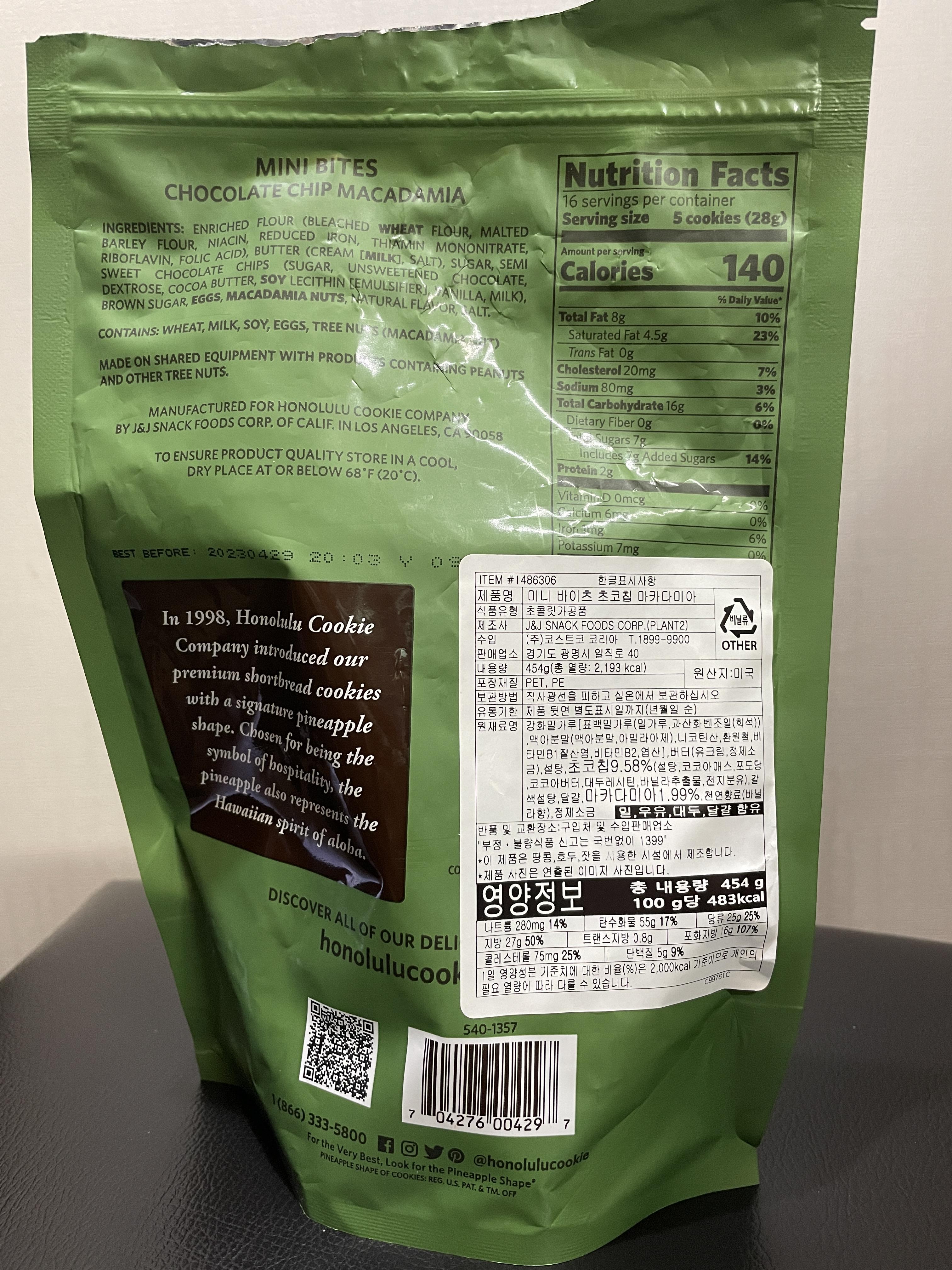 [영양정보] 미니 바이츠 초코칩 마카다미아